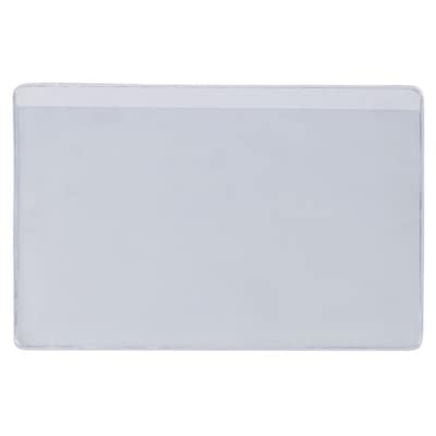 Clear flexible plastic press on vinyl envelopes self adhesive pockets sleeves pouches and holders with peel and stick permanent pressure sensitive adhesive backing.